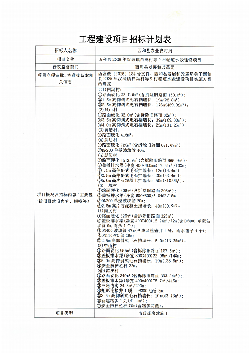 西和縣2025年漢源鎮(zhèn)白馮村等9村巷道水毀建設(shè)項(xiàng)目