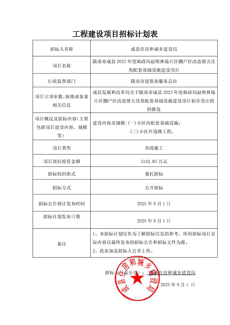隴南市成縣2023年度郵政局趙壩林場(chǎng)片區(qū)棚戶(hù)區(qū)改造德天佳苑配套基礎(chǔ)設(shè)施建設(shè)項(xiàng)目