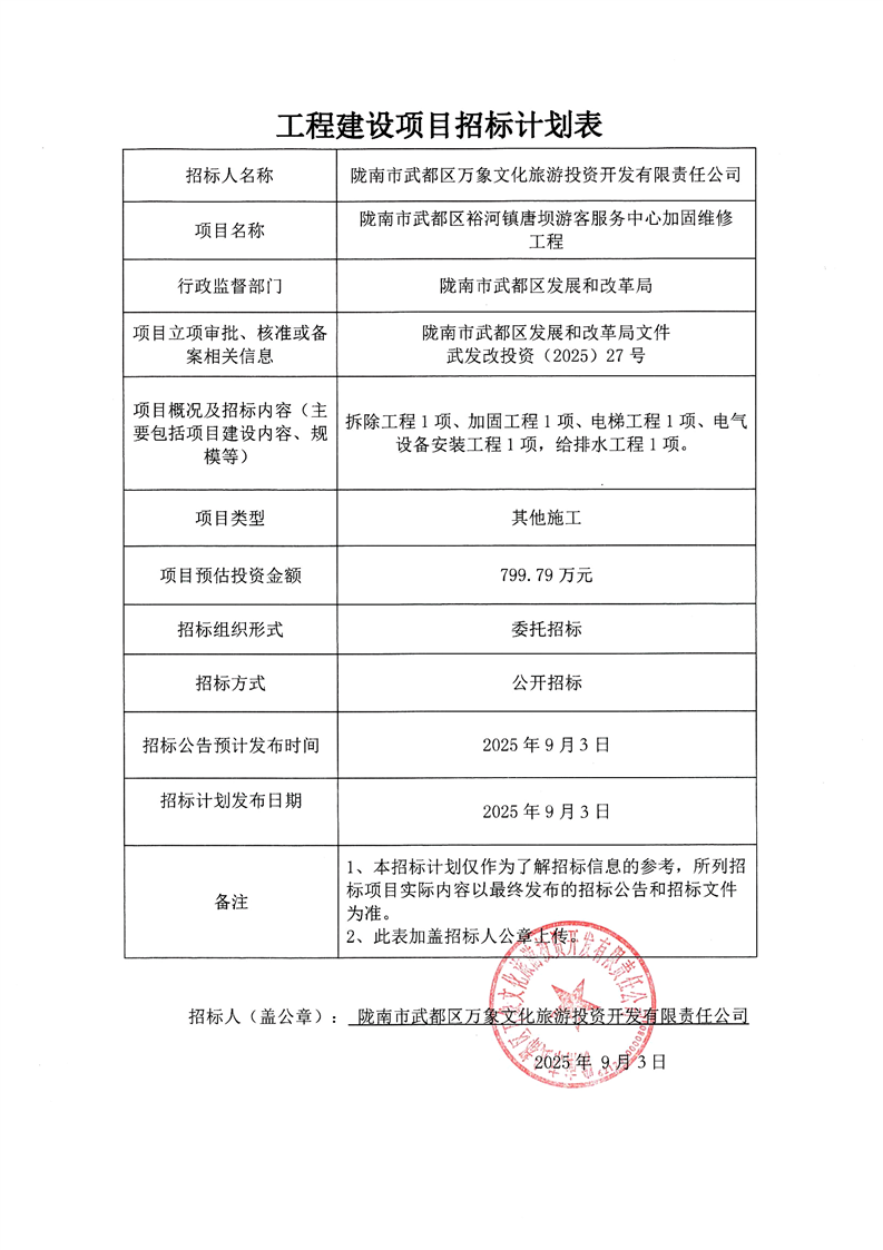 隴南市武都區(qū)裕河鎮(zhèn)唐壩游客服務中心加固維修工程