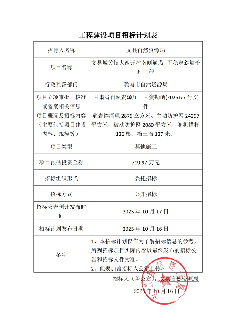 附件:文縣自然資源局工程建設(shè)項(xiàng)目招標(biāo)計(jì)劃.pdf