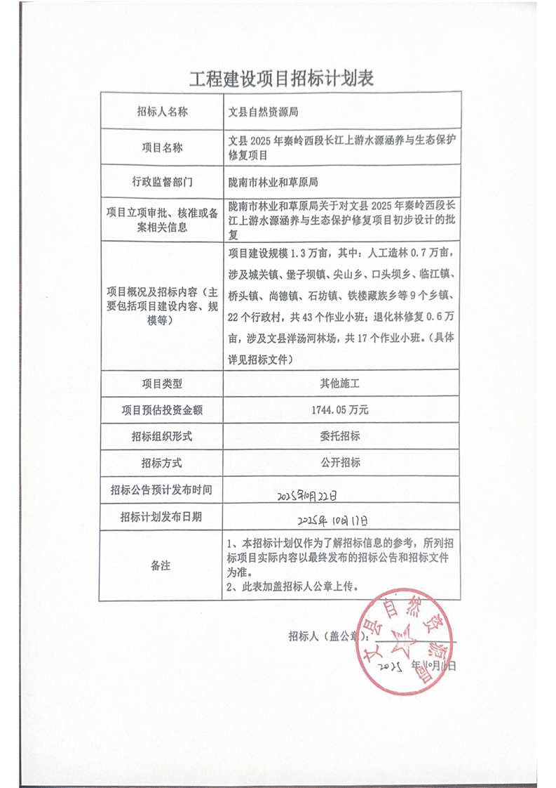 文縣2025年秦嶺西段長江上游水源涵養(yǎng)與生態(tài)保護(hù)修復(fù)項(xiàng)目