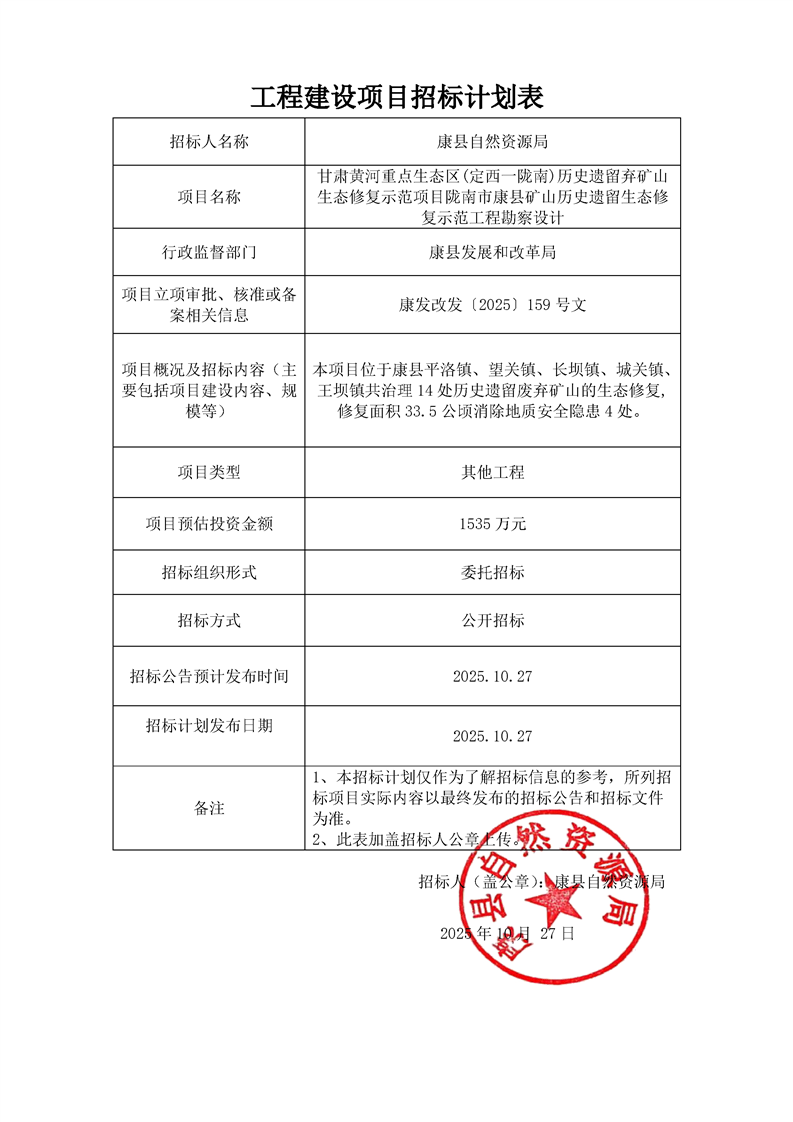 甘肅黃河重點(diǎn)生態(tài)區(qū)(定西一隴南)歷史遺留棄礦山生態(tài)修復(fù)示范項(xiàng)目隴南市康縣礦山歷史遺留生態(tài)修復(fù)示范工程勘察設(shè)計(jì)