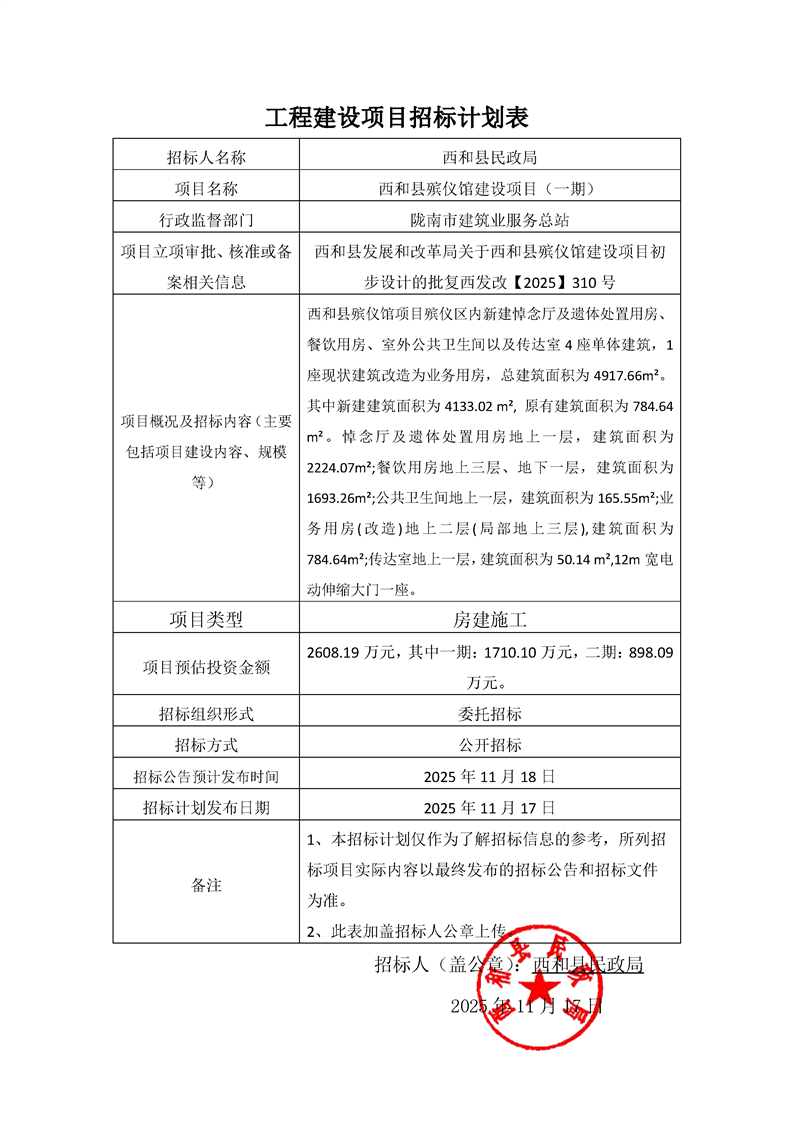 西和縣民政局工程建設(shè)項目招標計劃表.pdf