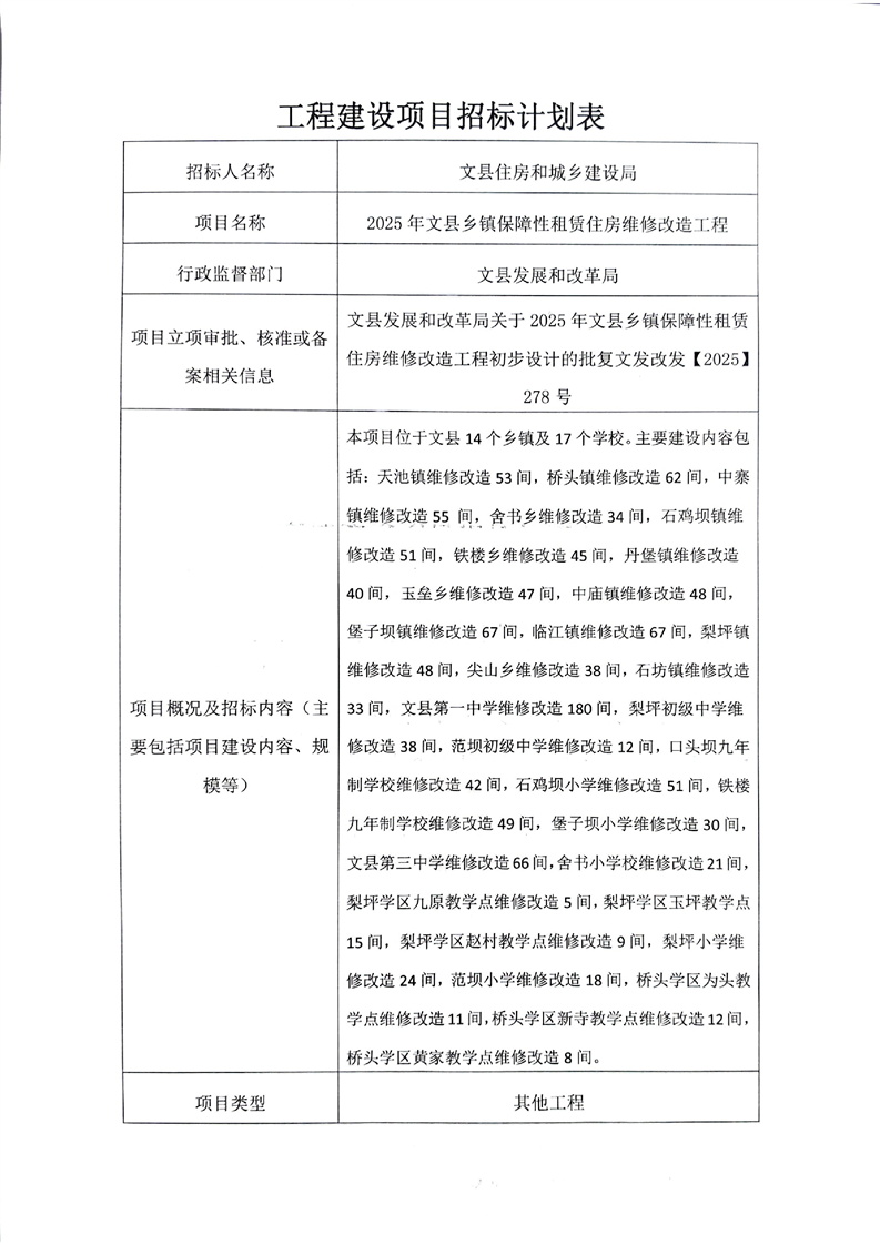 2025年文縣鄉(xiāng)鎮(zhèn)保障性租賃住房維修改造工程