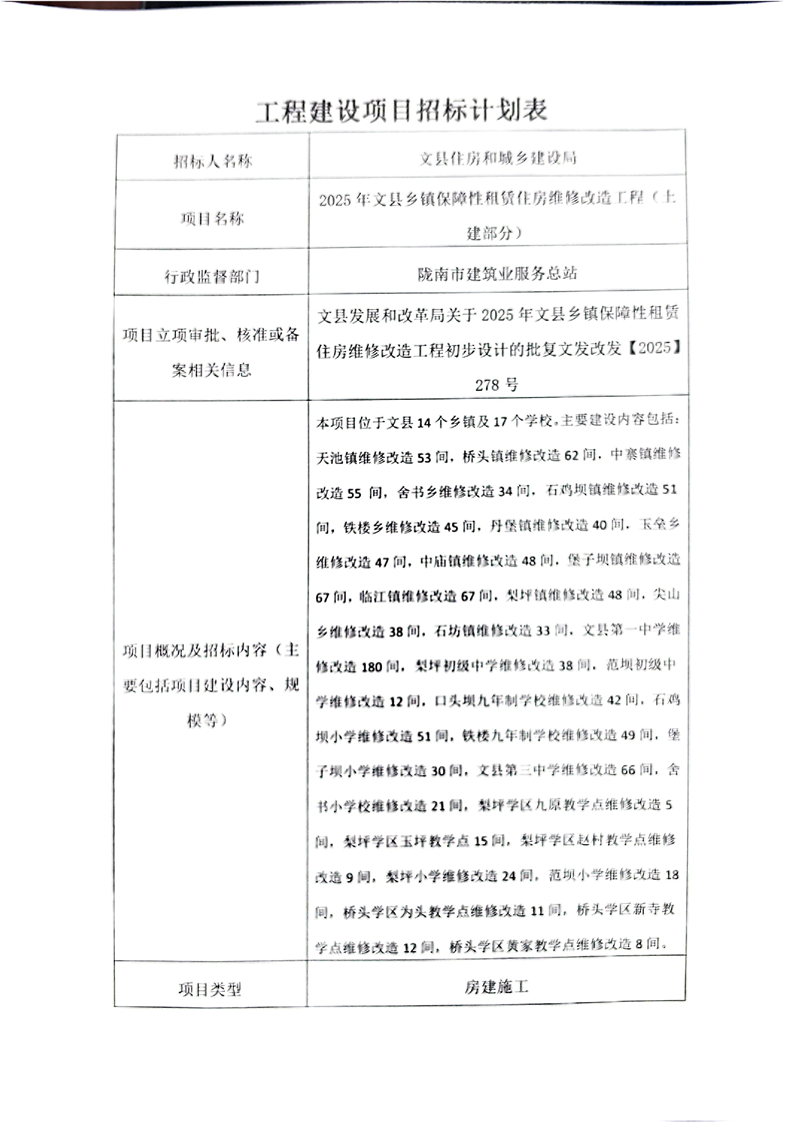 2025年文縣鄉(xiāng)鎮(zhèn)保障性租賃住房維修改造工程(土建部分)