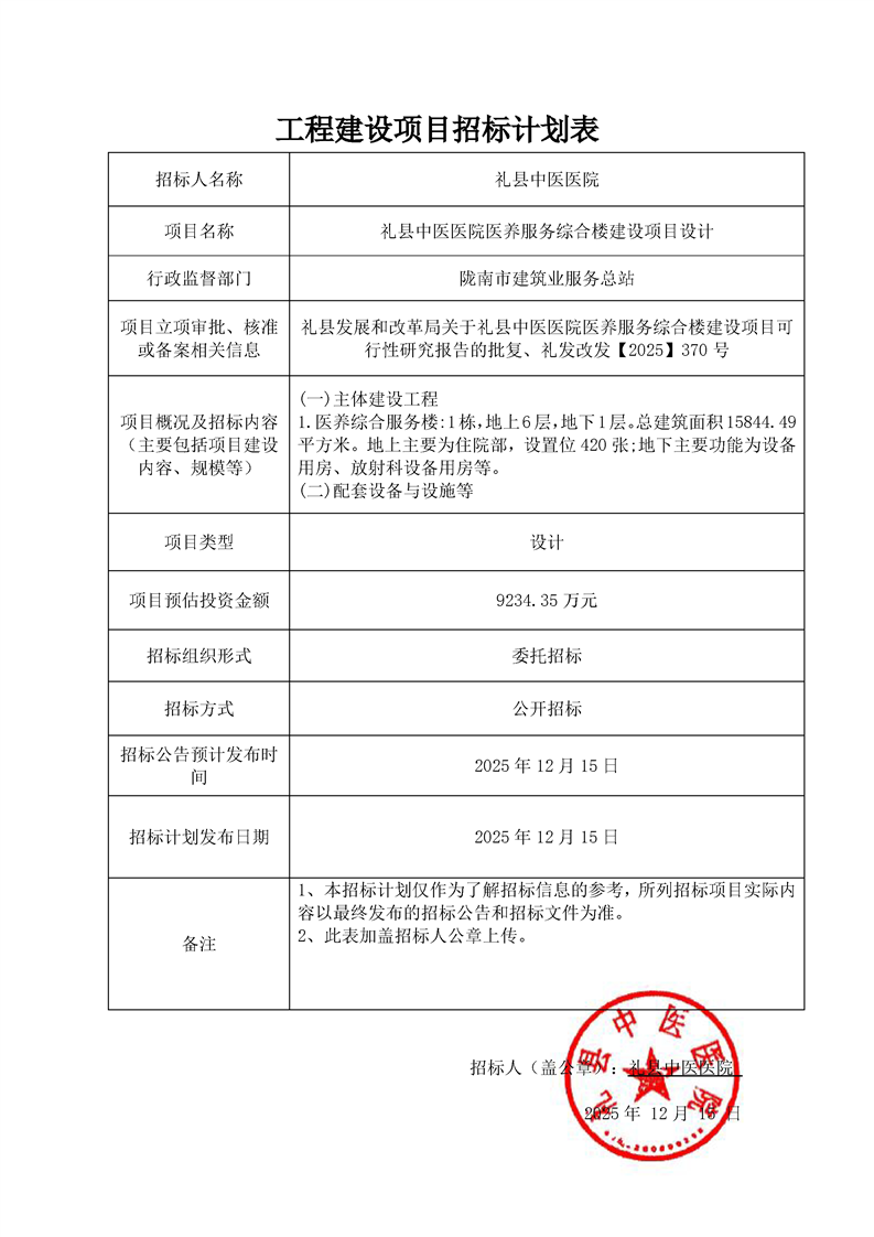 禮縣中醫(yī)醫(yī)院醫(yī)養(yǎng)服務綜合樓建設項目設計