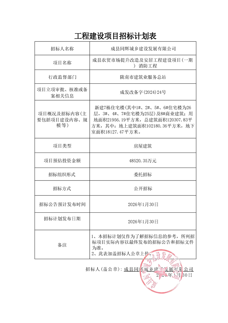 成縣農(nóng)貿(mào)市場提升改造及安居工程建設(shè)項(xiàng)目(一期) 消防工程