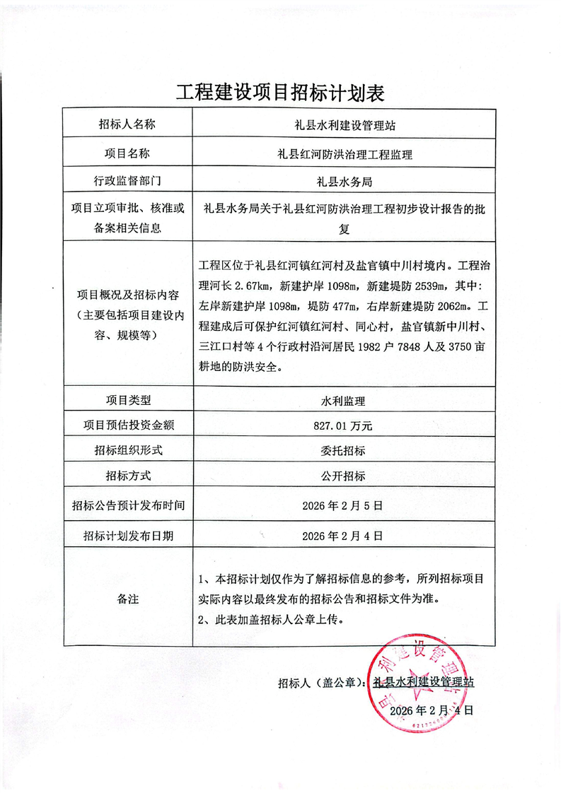 附件:招標(biāo)計(jì)劃表--禮縣紅河防洪治理工程監(jiān)理.pdf
