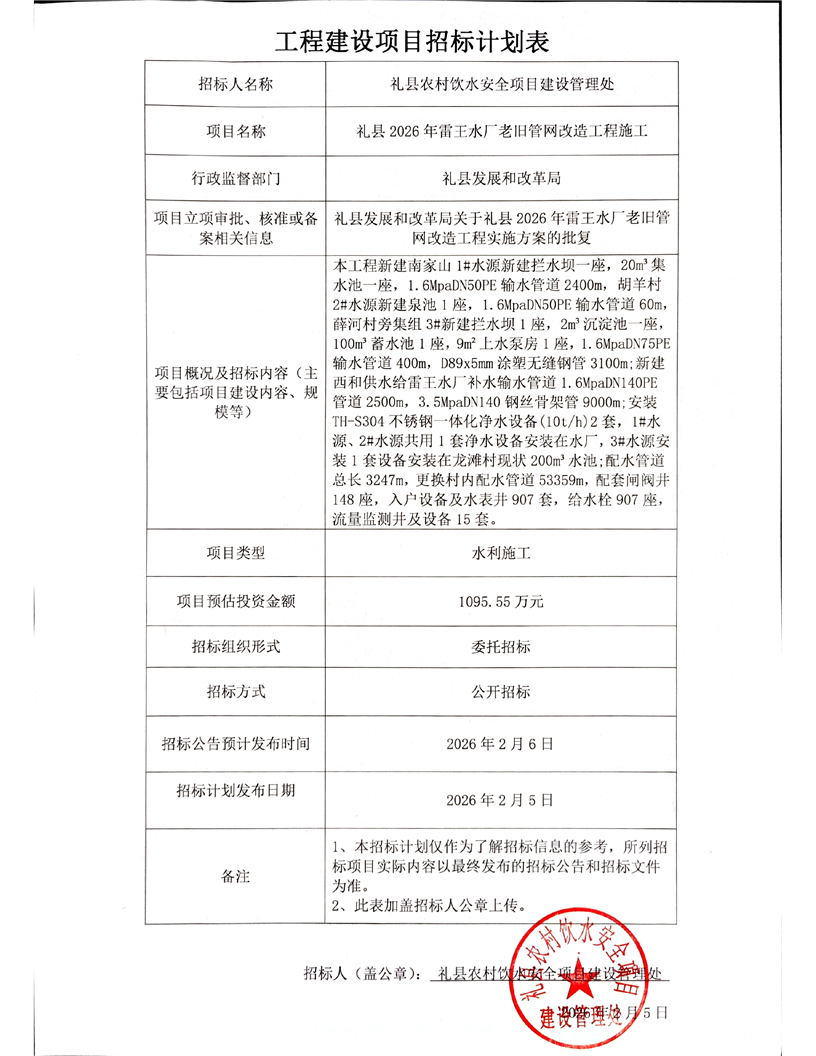 附件:禮縣2026年雷王水廠老舊管網(wǎng)改造工程施工.pdf