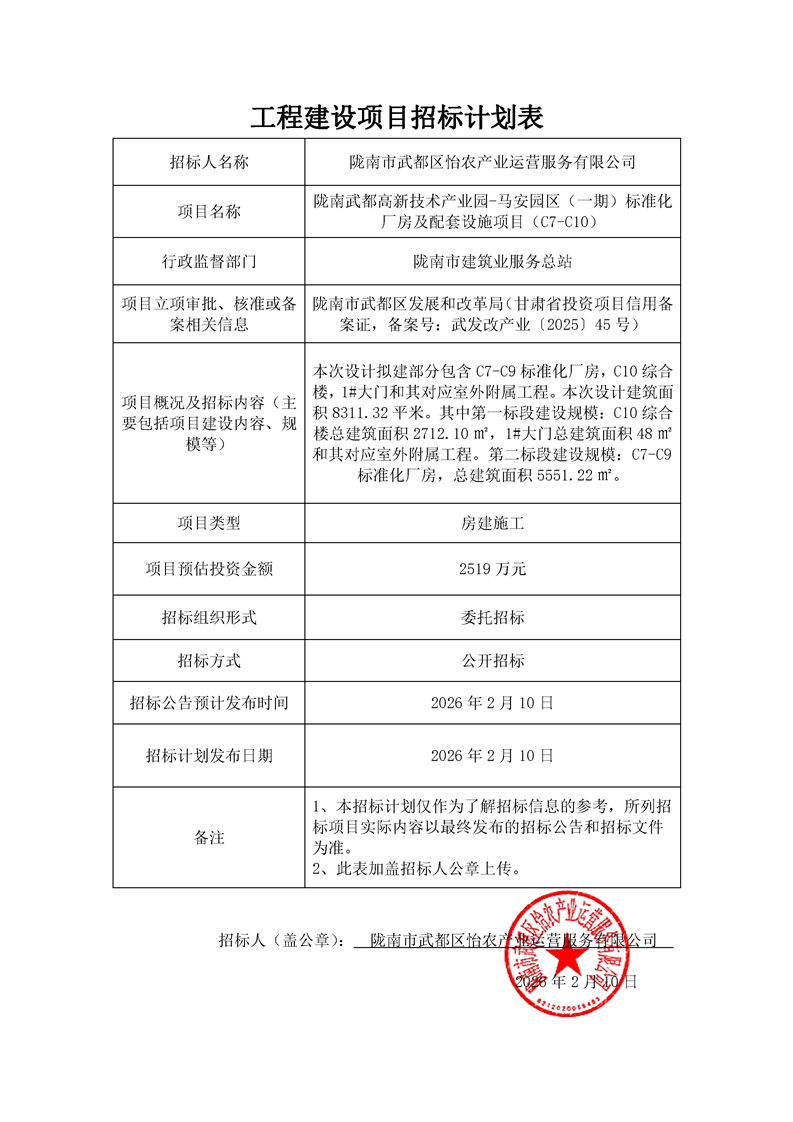 附件:施工招標(biāo)計劃表—隴南武都高新技術(shù)產(chǎn)業(yè)園-馬安園區(qū)(一期)標(biāo)準(zhǔn)化廠房及配套設(shè)施項目(C7-C10).pdf