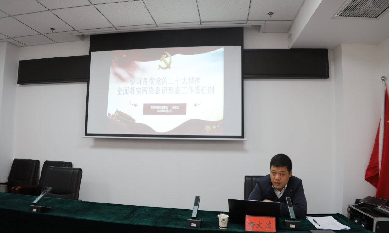 11月7日,楊文達同志以“學(xué)習(xí)貫徹黨的二十大精神,全面落實網(wǎng)絡(luò)意識形態(tài)工作責(zé)任制”為題作了專題培訓(xùn)