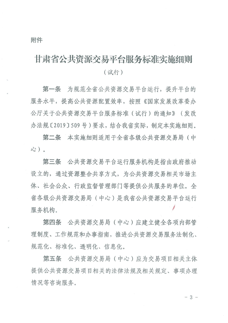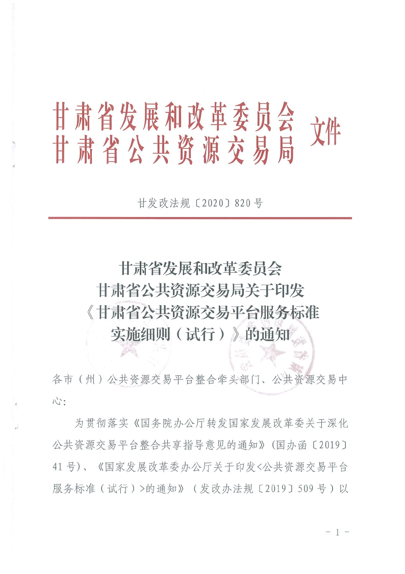 省發(fā)改委省公共資源交易局關(guān)于印發(fā)《甘肅省公共資源交易平臺服務(wù)標(biāo)準(zhǔn)實(shí)施細(xì)則(試行)》的通知